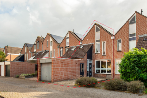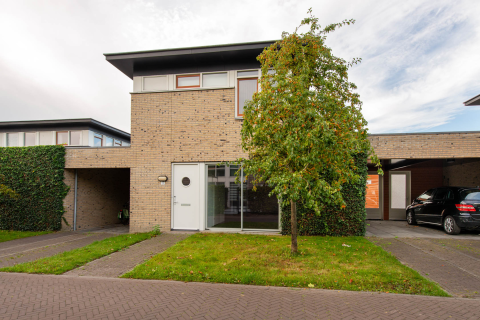 Op de begane grond is er een royale woonkamer met aan de achterzijde de luxe open woonkeuken met kook- en spoeleiland en een aangebouwde veranda. Aan de linkerzijde bevinden zich de 2 slaapkamers, waarvan nu 1 in gebruik als kantoor, een bijkeuken en de luxe badkamer. Op de 1e verdieping bevindt zich de 3e slaapkamer met 2e luxe badkamer, via een bibliotheektrap zijn de technische ruimte en de mezzanine bereikbaar. De woning is verder volledig voorzien van stucwerk wanden- en plafonds, fraaie zwarte aluminium kozijnen met HR-beglazing, deels elektrische rolluiken, nieuwe elektra- en schakelmateriaal en een volledig aangelegde tuin met veranda en tuinberging.